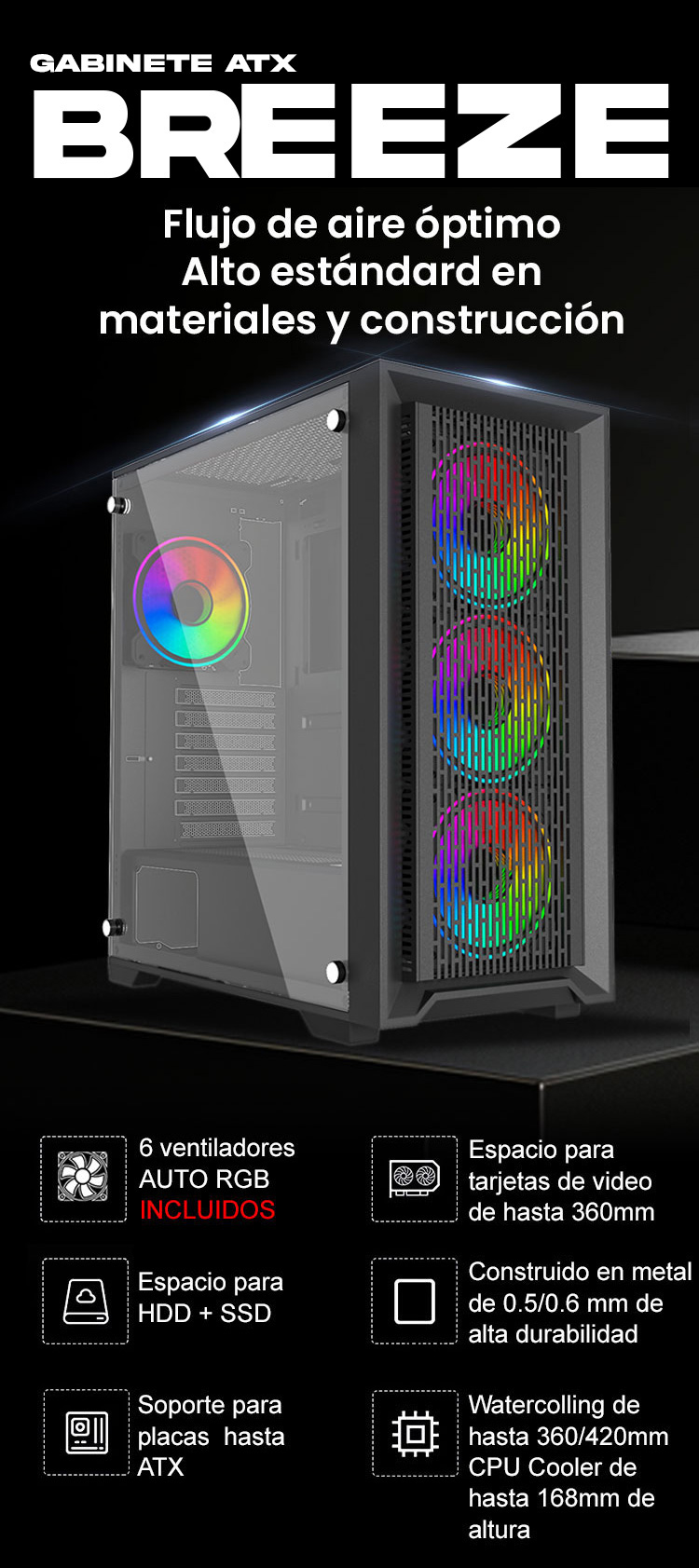 Tipo y Posición de Fuente de Poder | Bottom & ATX PSU (150-220mm) |
